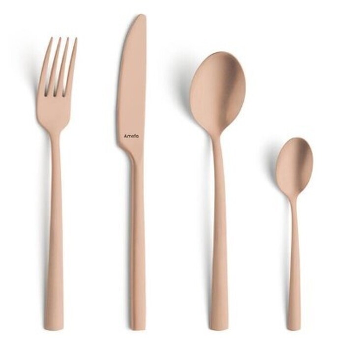 Súprava dizajnových príborovSúprava príborov s elegantným dizajnom sa stane neoddeliteľnou súčasťou každej kuchyne. Dizajnové príbory v champagne farbe od značky Amefa sú vyrobené z kvalitnej ocele, a preto sa nemusíte báť vložiť príbory do umývačky riadu. Kazetové balenie obsahuje jedálne nože, vidličky, polievkové lyžice a kávové lyžičky vždy po 4 kusoch. |