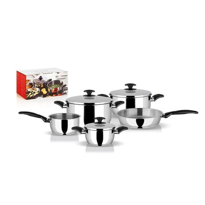 Balenie obsahuje:- Panvica s priemerom 24 cm a objemom 2,5 l - Rajnica s priemerom 16 cm a objemom 1,6 l - Hrniec s priemerom 16 cm a objemom 1,9 ls pokrievkou - Hrniec s priemerom 22 cm a objemom 4,2 ls pokrievkou - Hrniec s priemerom 24 cm a objemom 5,2 ls pokrievkou