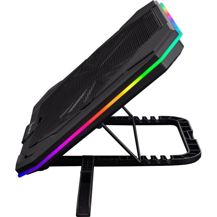 Silná a stabilnáChladiaca podložka Bora X1 je prispôsobená ;pre notebooky do veľkosti obrazovky až 17". Je vyrobená z vysoko kvalitného ABS plastu a kovu, ktoré robia podložku silnú a pevnú. Protišmyková gumová podložka zaisťuje notebooku potrebnú stabilitu pri jeho používaní. V zadnej časti stojana sú k dispozícii dva držiaky na mobilné telefóny, vďaka ktorým budete mať svoj mobil stále na očiach a aj keď budete plne ponorení v hre, neujde vám žiadny dôležitý hovor. |