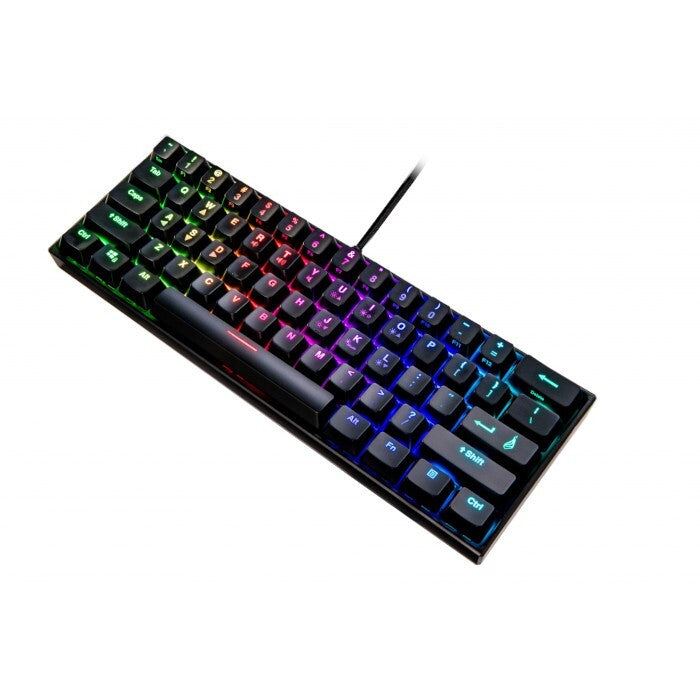 Mechanická herná klávesnicaSUREFIRE KingPin M1 60% RGB, USKaždý herný nadšenec potrebuje na hranie tú správnu hernú klávesnicu aj v prípade, že nemá dostatočný priestor na stole. K tomu je ideálna herná klávesnica SUREFIRE KingPin M1, ktorá vďaka chýbajúcej numerickej časti má tie správne rozmery. Klávesy odolajú aj náročnejšiemu hraniu vďaka životnosti až 50 miliónov stlačení. K dispozícii je voliteľné osvetlenie z výberu zo 6 aktívnych režimov a 8 farieb. Všetky klávesy majú funkciu anti-ghosting, nechýbajú ani 3 multimediálne klávesové skratky. Klávesnica sa dá ľahko prepojiť s počítačom vďaka USB káblu s dĺžkou 1,8m. |