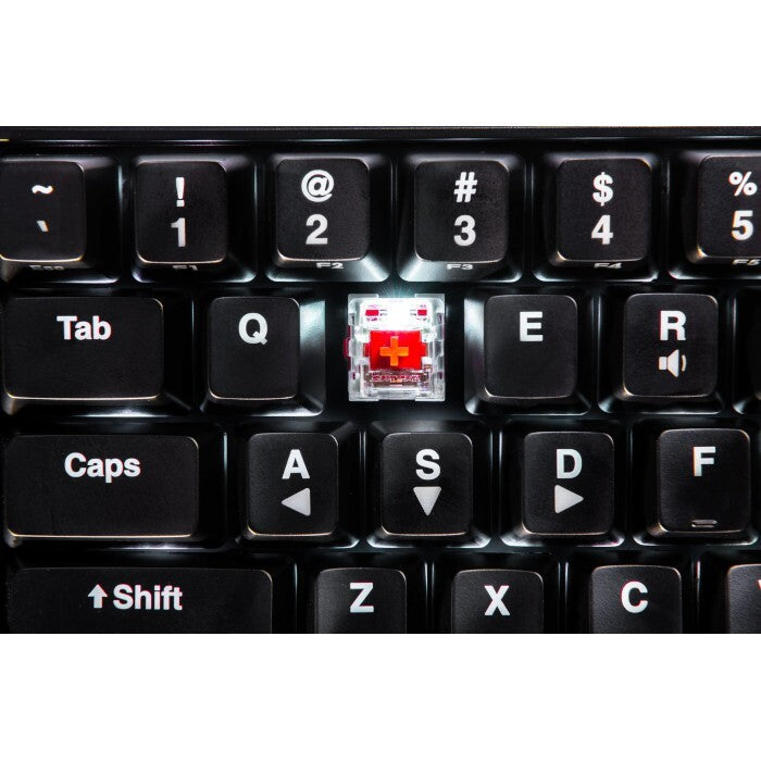 Tá správna veľkosťAj napriek tomu, že hernej klávesnici KingPin M1 chýba numerická časť, stále dosahuje rovnaké kvality ako akákoľvek iná herná klávesnica. Napriek tomu, že je komprimovaná do 60% formátu, stále ponúka všetky dôležité funkcie pre hranie na akciách, LAN párty, turnajoch alebo pre samostatného hráča, ktorý preferuje minimalistický dizajn. Výška klávesnice sa dá nastaviť do dvoch polôh pomocou nožičiek, ktoré sú schované v spodnej strane klávesnice. Jazyk klávesnice je prispôsobený pre americkú angličtinu, preto je klávesnica vybavená 61 klávesmi. |