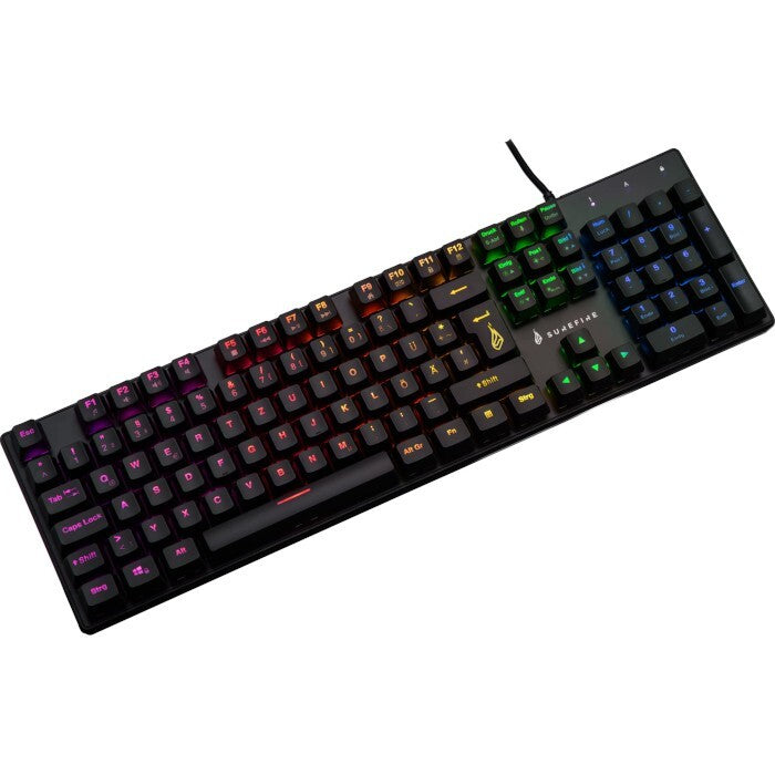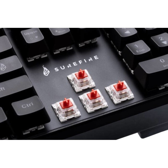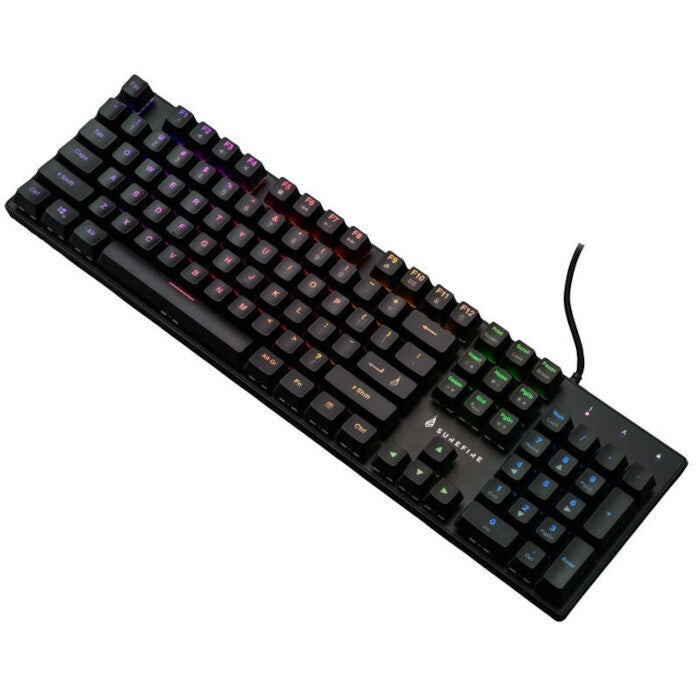 Mechanická herná klávesnicaSUREFIRE KingPin M2 RGB, USKaždý herný nadšenec potrebuje na hranie tú správnu hernú klávesnicu, ktorá mu pomôže plne ovládať dianie v hre. K tomu je ideálna herná klávesnica SUREFIRE KingPin M2, ktorá je vybavená numerickou klávesnicou. Klávesy odolajú aj náročnejšiemu hraniu vďaka životnosti až 50 miliónov stlačení. K dispozícii je voliteľné osvetlenie z výberu 6 režimov, ďalej je klávesnica vybavená funkciou 100% anti-ghostingu všetkých klávesov a nechýba 12 multimediálnych klávesových skratiek. Jednoduché prepojenie s počítačom obstará 1,8 m dlhý USB kábel. |