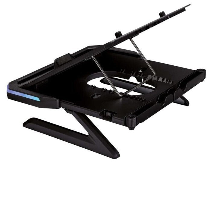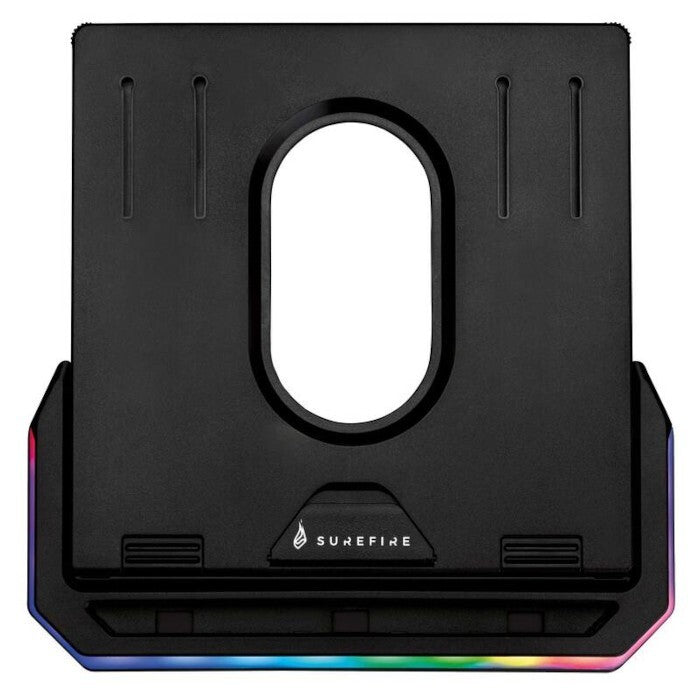 Stojan na notebookSUREFIRE Portus X1 s podsvietenímPokiaľ ste herný nadšenec, ktorý preferuje miesto klasického stolného počítača radšej notebook, nesmie vašej pozornosti ujsť skvelý herný držiak na notebook Portux X1 od firmy SureFire. Vďaka nastaviteľným uhlom a výškam si môžete nastaviť notebook podľa svojich potrieb. Držiak je prispôsobený pre notebooky s maximálnou veľkosťou 17,3" a hmotnosťou 10 kg. V držiaku sú zabudované dva vetráky, ktoré pomáhajú k prúdeniu vzduchu a zníženiu prevádzkovej teploty notebooku. K dispozícii sú aj dva držiaky na mobily a nechýba LED osvetlenie so 6 režimami Držiak je designovaný tak, aby bol ľahko prenosný a skladný a vy si ho tak mohli vziať kamkoľvek so sebou. |