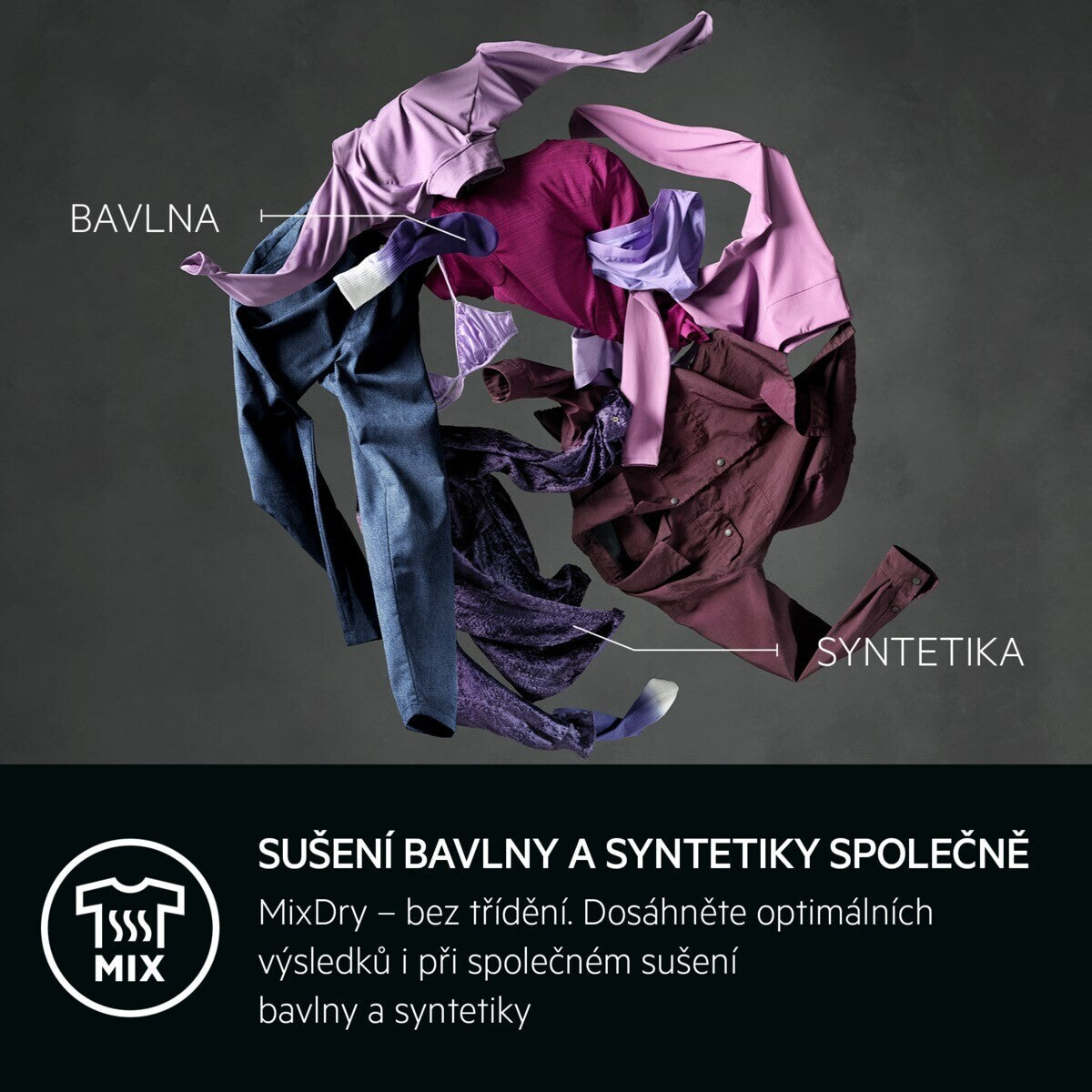 Žiadne triedenieDíky funkci MixDry zajistí sušička důkladné a rovnoměrné sušení bavlněných i syntetických látek bez nutnosti je nejprve roztřídit a sušit odděleně. Ušetříte si tak další starost s rozdělováním vypraného oblečení. |