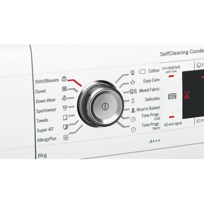 Sušička bielizne Bosch WTW85590BY, A+++Voľne stojaca sušička bielizne Bosch WTW85590BY s tepelným čerpadlom a samočistiacim kondenzátorom disponuje mnohými funkciami, ktoré váš život urobí značne komfortnejším. Tým sa stane úplne nenahraditeľnou súčasťou vašej domácnosti. Pretože sa pýši schopnosťou dosiahnuť vysokých výkonov s nízkou spotrebou energie, právom si zasluhuje zaradenie do energetickej triedy A+++. Iste oceníte aj jej šetrnosť ako k vášmu domácemu rozpočtu, tak i životnému prostrediu. Sušička je konštruovaná tak, aby vás pri prevádzke nerozptyľovala rušivými zvuky. Funguje na tichší chod vďaka špeciálnej ochrane proti vibráciám. Kapacita bubna s vnútorným LED osvetlením pojme až 8 kg náplne, a teda bez problémov uspokojí celú rodinu. |