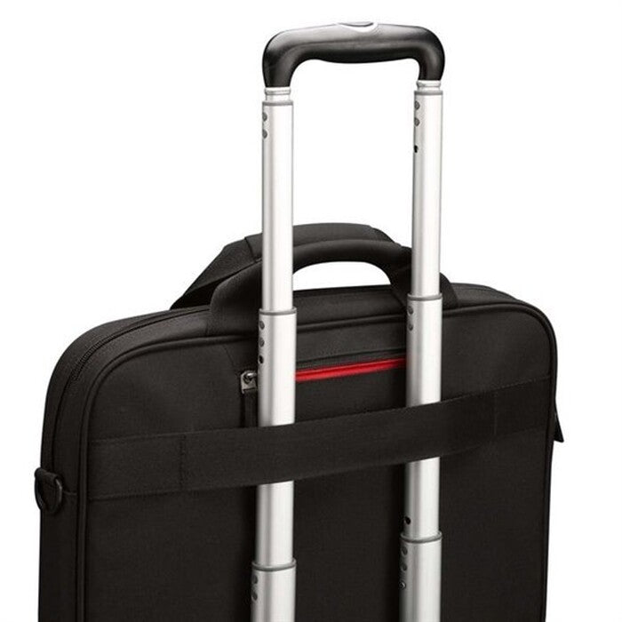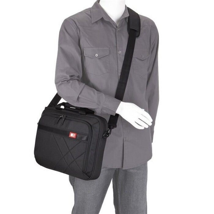Robustná brašna pre každodenné intenzívne využitie. Pojme 15,6" notebook aj 10,1" tablet, dokumenty, príslušenstvo aj prenosnú elektroniku. Hlbokú čerň látky s asymetrickým vzorom vkusne červený akcent.