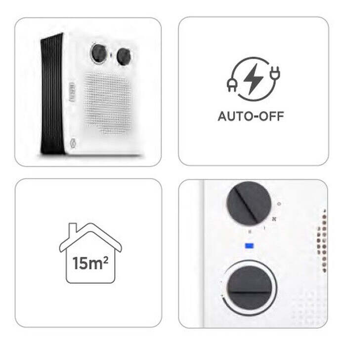 Praktické funkcieProdukt je vybavený plynulo nastaviteľným termostatom a k dispozícii sú 2 výkonové stupne vykúrenia a režim ventilátoru. Ventilátor okamžite prehreje vašu miestnosť. Môžete s ním veľmi dobre manipulovať, vďaka jeho nízkej hmotnosti. Užívateľov iste poteší skutočnosť, že prístroj je vybavený taktiež funkciou proti prehriatiu. |
