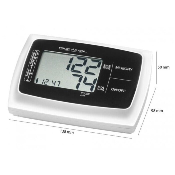 Presné meranieVeľmi praktický automatický tlakomer ProfiCare BMG 3019, ktorý vám počas chvíle zmeria krvný tlak a pulz. Tento pomocník vám v prípade nepravidelného tepu detekuje aritmiu. Tlakomer je ideálny pre dve osoby a dokáže si zapamätať až 2 x 60 hodnôt. |
