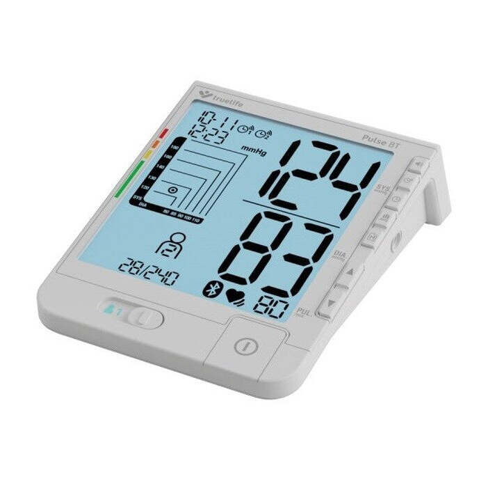 Veľký a prehľadný displejTlakomer TrueLife Pulse BT je vybavený prehľadným displejom s nadpriemernou veľkosťou 6,5" a s farebným podsvietením. Displej zobrazuje všetky dôležité hodnoty a zapnuté funkcie, vrátane dátumu a času. Namerané hodnoty vám displej zobrazí v priebehu chvíľky a v prehľadnom grafe. Tlakomer umožňuje nastavenie alarmu, ktorý vám pripomenie čas na meranie. |