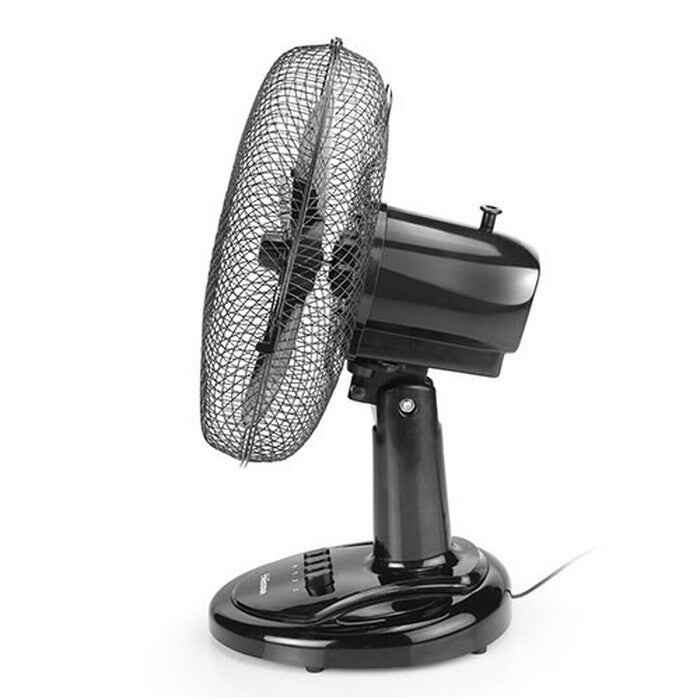 Pripravte sa na leto a kúpte si stolný ventilátor VE-5931 od spoločnosti Tristar! Tento model je netradičný svojim čiernym prevedením a bude sa skvele vynímať ako na vašom pracovnom stole v obývačke, tak v kancelárii. Ventilátor spoľahlivo zabezpečí optimálnu výmenu vzduchu v miestnosti a ochladí vás aj pri tom najparnejšom počasí. Keďže sa jedná o otočný ventilátor, môžete zvolením funkcie oscilácie zvýšiť dosah ventilátora. Zariadenie ponúka príkon 40 W a 1253 ot., Pričom si môžete zvoliť z 3 rôznych rýchlostí. Vrtuľa má priemer 30 cm, samotný vetrák potom dosahuje výšku 46 cm. Tichý chod ventilátora vám umožní v pokoji sa venovať práci i relaxáciu. Výrobca myslel aj na bezpečie svojho výtvoru a opatril ho ochranou proti mrazu.