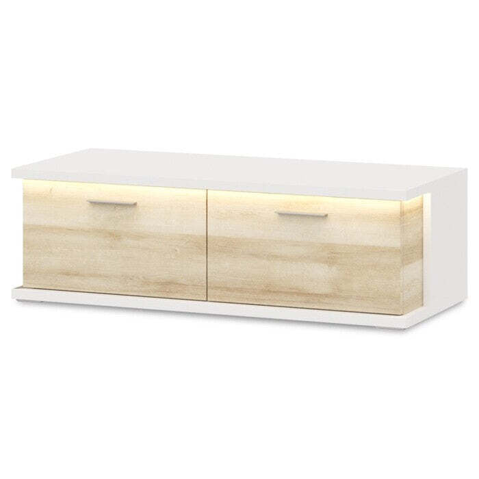 Tento kus nábytku disponuje veľkorysým úložným priestorom, ktorý určite oceníte. Do dvoch zásuviek uložíte veľa vecí. Ďalšou výhodou je integrovaný LED pásik v hornom dne. Toto osvetlenie dotvára príjemnú atmosféru behom večera.