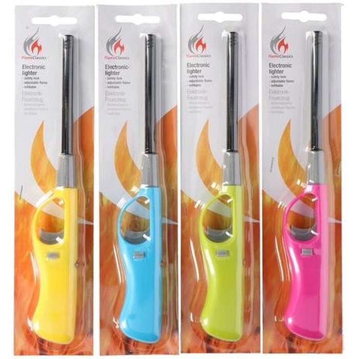 Plynový zapaľovač sporákovPri použití držte zapaľovač smerom od tváre a odevu. Nepoužívajte plynový zapaľovač na zapaľovanie cigariet, cigár alebo fajok. Uistite sa, že po použití plameň zhasol. Nikdy nevystavujte zapaľovač teplotám nad 50 stupňov Celzia a nenechávajte ho ležať na priamom slnku. Plynový zapaľovač neprerážajte a nevhadzujte do ohňa. Pri používaní tohto výrobku dodržujte všetky pokyny a upozornenia poskytované výrobcom. Nenechávajte horieť po dobu dlhšiu ako 30 s. Obsahuje horľavý plyn pod tlakom. Výška zapaľovača: 26,8 cm. |