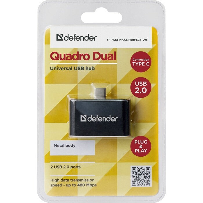 Hub Defebder Quadro Dual USB rozbočovačRozšírte jednoducho váš počet USB portov o ďalšie dva. Pripojte rozbočovač pomocou USB-C konektora a získajte naviac dva klasické USB 2.0 porty s prenosovou rýchlosťou až 480 Mb/s. Vďaka kovovej konštrukcii zvládne tento rozbočovač aj nie príliš šetrné zaobchádzanie. |