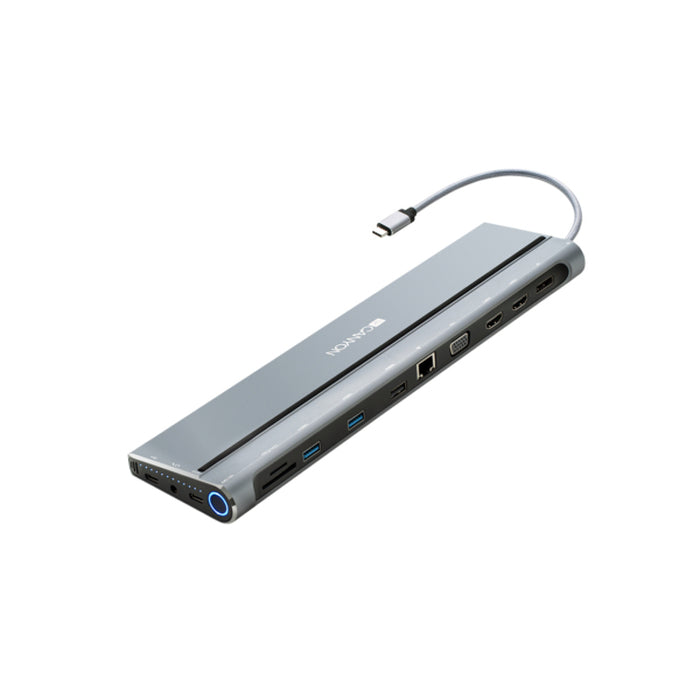Dokovacia stanica Canyon 14v1Dokovacia stanica Canyon DS-9 druhej generácie vylepší možnosti pripojenia k vášmu notebooku na maximum. Ľahko ju pripojíte ku svojmu zariadeniu pomocou USB-C konektora a ihneď si môžete užívať všetkých 14 portov, ktoré ponúka. Tešiť sa môžete hneď na dva klasické USB 3.0 porty, dva HDMI porty a jeden DisplayPort s podporou prenosu obrazu vo 4K / 30Hz, VGA port, jeden ultrarýchly USB-C port pre prenos dát a jeden pre dobíjanie vášho zariadenia (PowerDelivery 100 W), jeden RJ-45 port pre pripojenie k pevnému internetu, kombinovaný 3,5mm jack pre pripojenie mikrofónu alebo slúchadiel a tiež na čítačku pamäťových SD a micro SD kariet. Vďaka HDMI, VGA a DislayPortu môžete k svojmu notebooku pripojiť navyše až tri monitory súčasne a užívať si tak naozaj veľké pracovné plochy. |