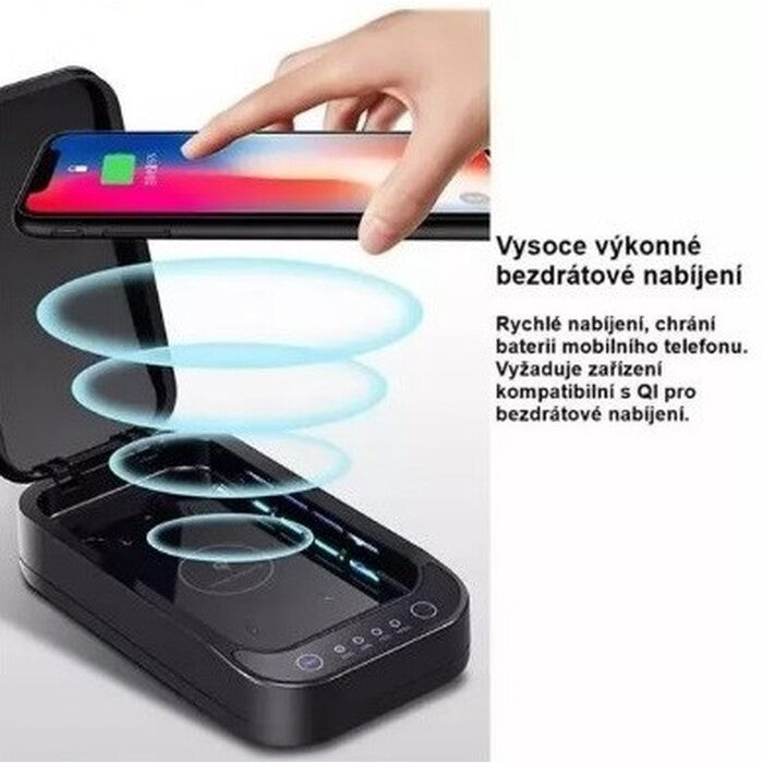 Mnoho funkciíSterilizátor môžete použiť jednak k sterilizácii zariadení, ktorá trvá približne 8-10 minút. Využiť môžete tiež funkciu nabíjania aj počas dezinfekcie vďaka internému USB portu alebo pomocou zabudovaného Qi nabíjania. Sterilizátor je možné pripojiť k akémukoľvek výstupu USB a používať ho ako Powerbanku. K dispozícii je tiež aromaterapeutická funkcia pre éterický olej a hlasové oznámenie o aktuálnom stave zariadenia a procese dezinfekcie. |