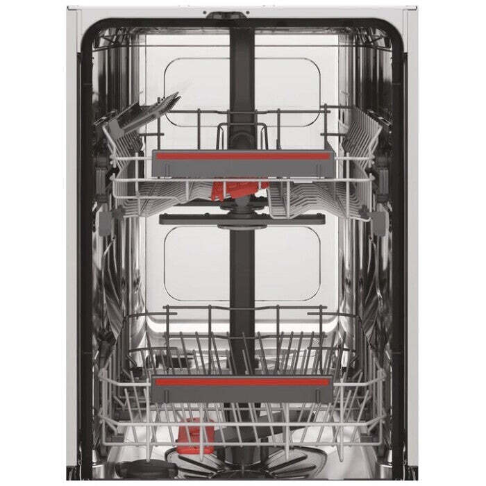 Dvojité sprchovacie ramenoDve rotačné sprchovacie ramená zabezpečujú dokonalý oplach všetkého riadu, ktorý do umývačky dáte. Ostrekovače sa postarajú o to, aby sa voda dostala do každého rohu a váš riad tak bude čistý a vyleštený ako v hornom, tak aj v dolnom koši. |