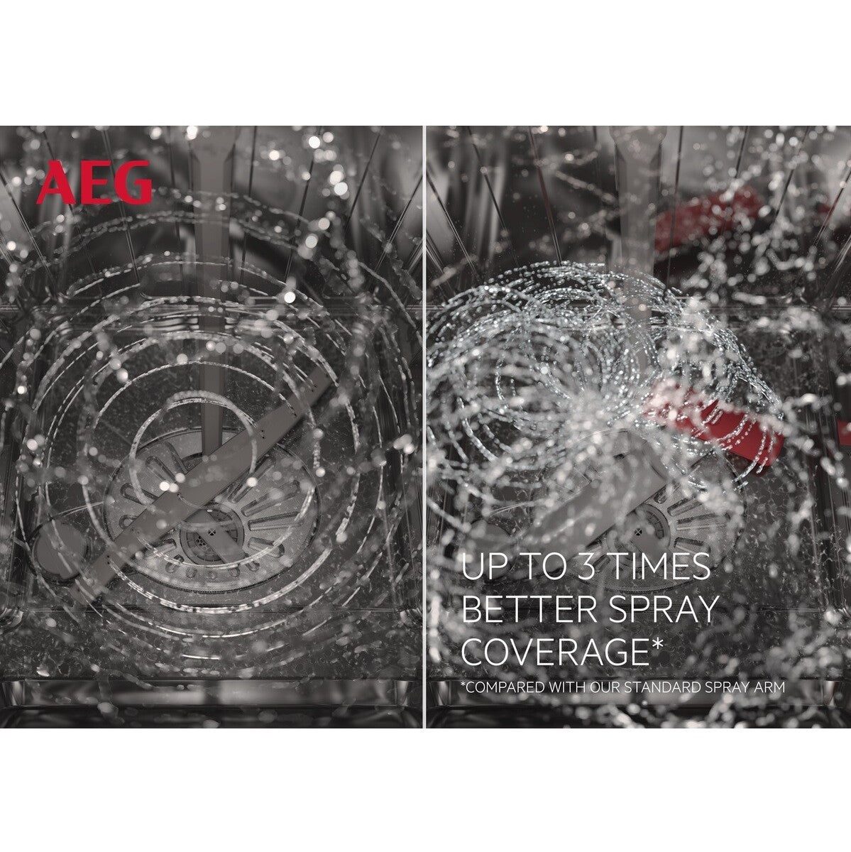 Výkonné umývanie riaduZažite bezchybné umývanie riadu s funkcí SatelliteClean®. Toto ostrekovacie rameno má trikrát lepšie pokrytie, než je bežné. Pretože dvojito rotujúce rameno neustále mení uhol ostreku, dosiahne voda do každého kúta. |