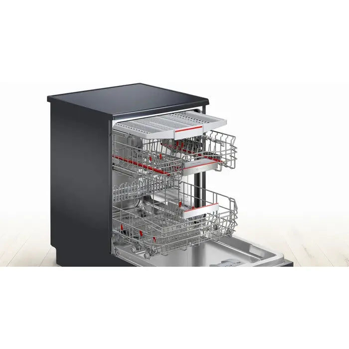 Voľne stojaca umývačka riadu Bosch SMS6ECC00EModerné domácnosti vyžadujú spoľahlivé a efektívne spotrebiče, ktoré zjednodušia každodenné úlohy. Umývačka riadu Bosch SMS6ECC00E je dokonalým spojením výkonu a praktickosti, ktoré vám umožnia užívať si čistý riad bez zbytočnej námahy. S energetickou triedou B a kapacitou pre 14 obedových súprav je táto umývačka ideálnym pomocníkom každej rodiny. Poteší nízkou hlučnosťou, ktorá nepresahuje 42 dB, bezpečnostným systémom AquaStop, cháňajúcim vašu domácnosť pred vykúrením aj praktickou zásuvkou na príbory VarioDrawer, ktorá šikovne nahrádza klasický príborový košík. S touto umývačkou je skrátka umývanie riadu ľahké a bezstarostné. |