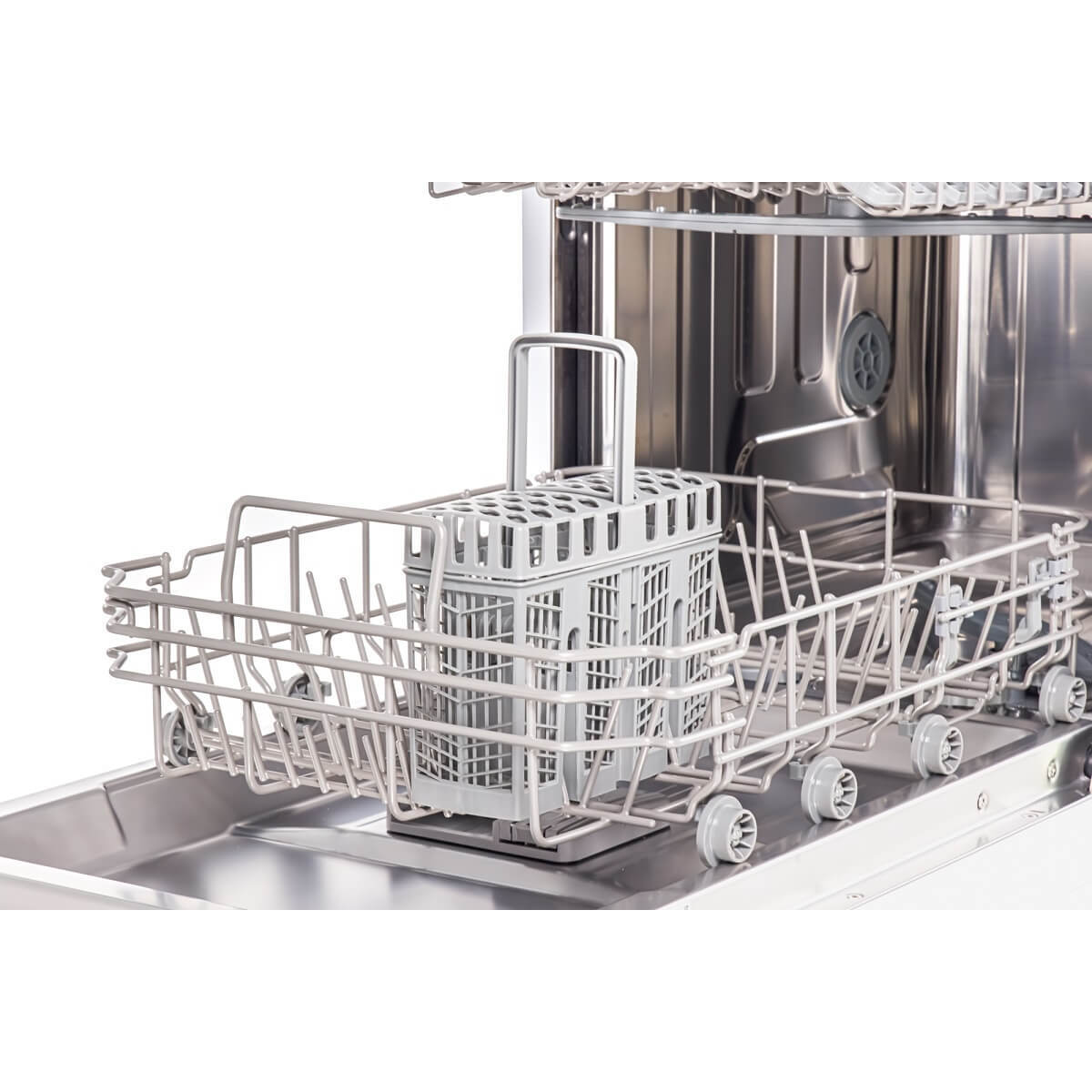 Bohatý vnútorný priestorMôžete sa tešiť na veľkú kapacitu, ktorá pojme až 9 obedových súprav. Riad pohodlne rozmiestnite do dvoch košov a na príbory je k dispozícii praktický košík. |