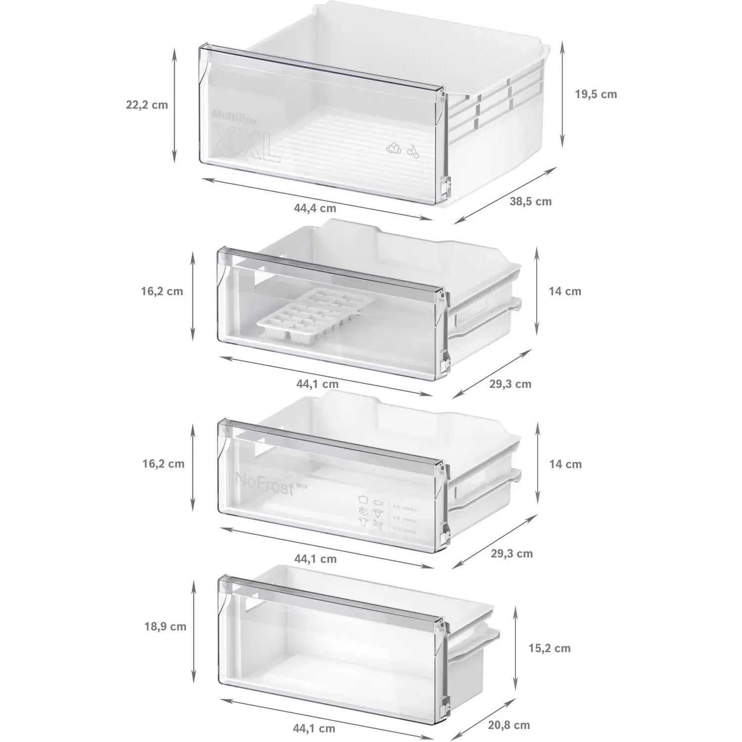 Odmrazovanie bez námahyVďaka technológii NoFrost je zabránené tvorbe ľadu a námrazy a vy sa tak navždy zbavíte nepríjemného odmrazovania. Chladný vzduch je ventilátorom rozháňaný do každého kúta mraziaceho priestoru a pritom sa potravinám odníma vlhkosť a voda z topiacej sa námrazy sa vyparí mimo spotrebiča. |