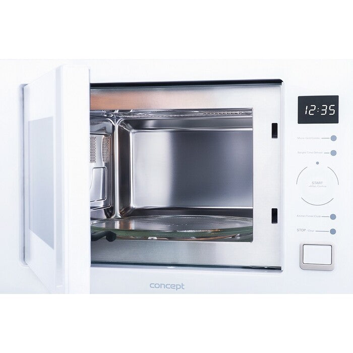 Vstavaná mikrovlnná rúra Concept MTV 6925 wh v sebe spája funkčnosť s nadčasovým dizajnom. Vďaka svojím kompaktným rozmerom vám táto rúra ponúkne veľký vnútorný objem 25 l. Požadované funkcie a výkon si ľahko navolíte pomocou dotykového ovládania a displeja. Voliť môžete celkom medzi 5 stupňami výkonu. K dispozícii však máte aj celkom 8 prednastavených programov, pomocou ktorých uvaríte napríklad mäso, zeleninu, ryby, ale aj popcorn alebo pizzu. V prípade, že pripravovaný pokrm potrebuje skombinovať viac rôznych spôsobov prípravy (napr. rozmrazenie a potom pomalé varenie), využite funkciu viacfázového varenia.