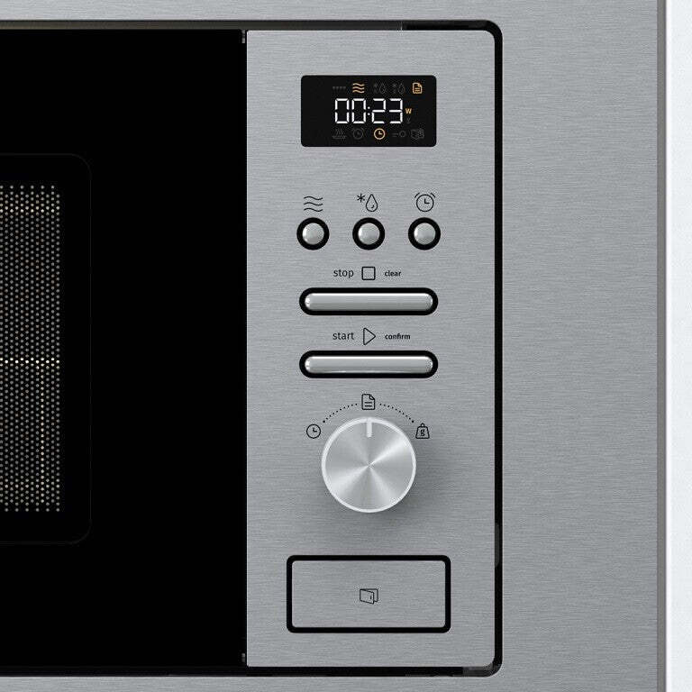 Hladké dvierkaVďaka tomu, že dvierka mikrovlnnej rúry nemajú žiadne zárezy ani hrany, kde by sa mohla usadzovať špina, dajú sa ľahšie udržiavať v čistote. Údržbu spotrebiča uľahčuje aj odnímateľný sklenený panel. |