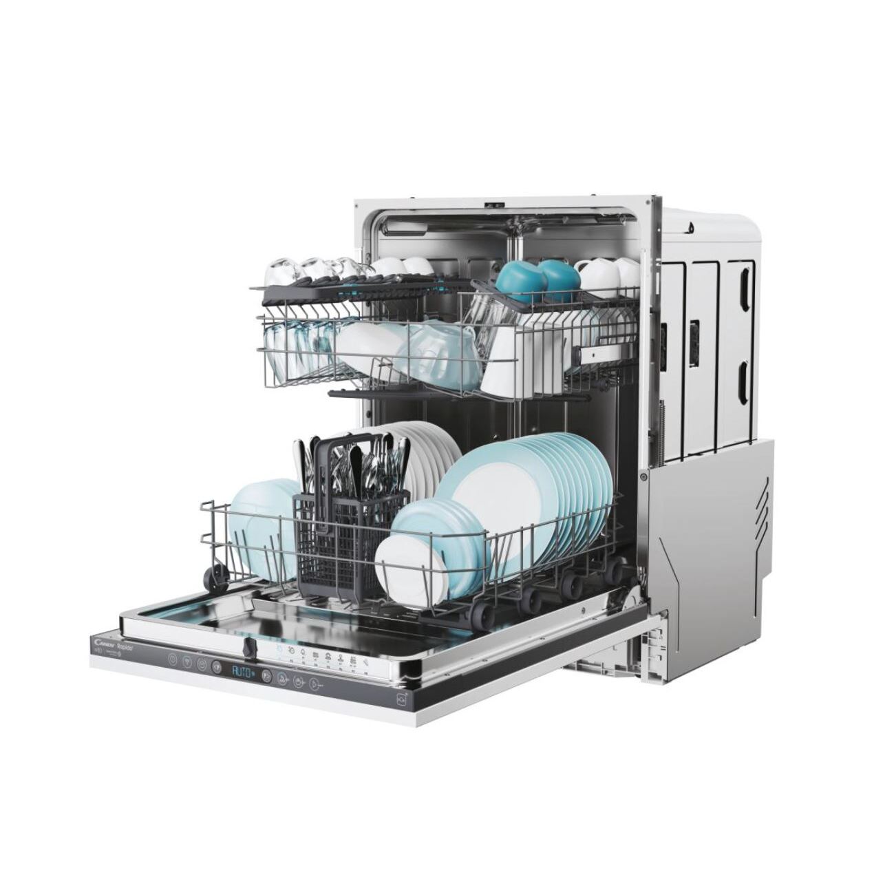 Candy Rapidò je umývačka štandardných rozmerov vybavená naozaj veľkým vnútorným priestorom vane. Vo svojej veľkosti sa jedná o najväčšie na trhu. Pojme teda naozaj veľké množstvo riadu a to vrátane tých najobjemnejších kusov, ako sú napríklad dosky alebo plechy do rúry. Zmestí sa o nej teda naozaj všetko. |