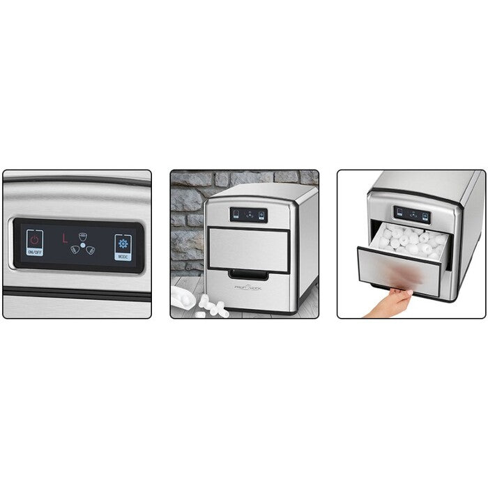 Jednoduchá obsluhaLen si na dotykovom paneli vyberiete jednu z troch veľkostí kociek a stlačíte štart. Na plný zásobník alebo došlú vodu vás potom prístroj upozorní zapípaním. A keď budete potrebovať pár kociek do vášho obľúbeného kokteilu, stačí otvoriť šuplík a nabrať si priloženú lopatkou. S týmto hrobníkom vám v lete ľad už nikdy nedôjde. |