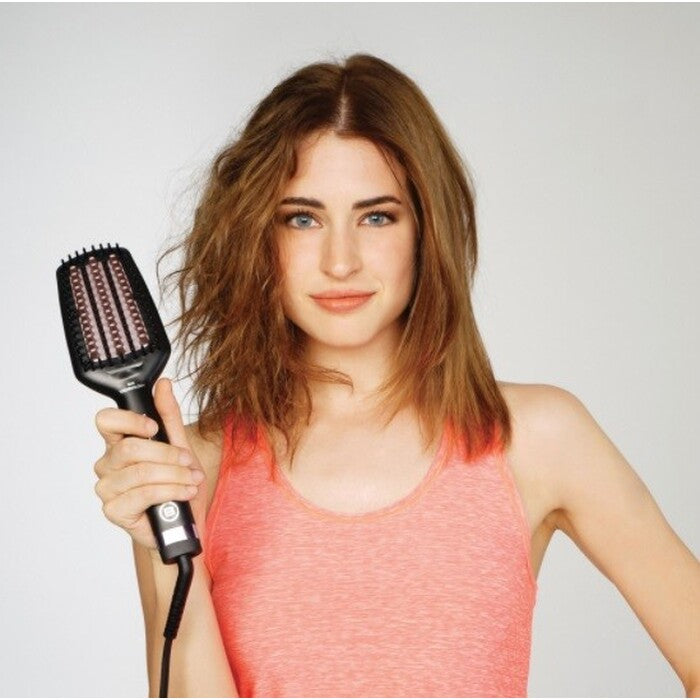 Ion technológiaŽehliaca kefa vaše vlasy hydratuje, eliminuje efekt krepovatenia a zaisťuje, že sa budú lesknúť. To všetko je zaistené vďaka iónovej technológii. Ide o prirodzený proces, ktorý vlasom dodá len to najlepšie – presne to, čo potrebujú k tomu, aby vyzerali čo najlepšie. Túto funkciu aktivujete stlačením príslušného tlačidla a potom sa už o nič nestaráte. Žehliaca kefa na vlasy Magic Straight Brush je tak ideálnym pomocníkom pre hladké aj vlnité vlasy. Môžete ju totiž použiť kedykoľvek počas dňa pre oživenie vášho účesu. |