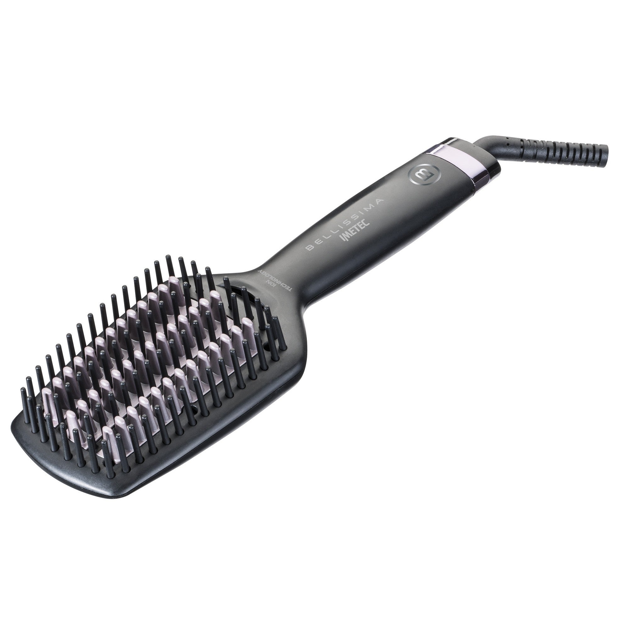 Jednoduché použitiePoužitie žehliacej kefy Magic Straight Brush je veľmi jednoduché a intuitívne – stačí dodržiavať niekoľko jednoduchých krokov. Tohto pomocníka je možné používať iba na suché a rozčesané vlasy bez použitia fixačných výrobkov (gél, lak na vlasy či pena), pretože by mohli obmedziť priechod kefy medzi prameňmi. Pre zefektívnenie celého procesu môžete vlasy rozdeliť do sekcií. Potom stačí len česať každý prameň zvlášť a napínať ho druhou rukou, aby bola zaistená priľnavosť k povrchu. Pre prirodzený efekt stačí prečesávať vlasy ako pri použití bežného hrebeňa. |